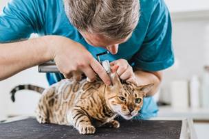 Occasionally touch your cat’s paws, ears, and mouth gently while giving treats or praise. Practicing this at home can help them feel more comfortable when a veterinarian performs an exam.